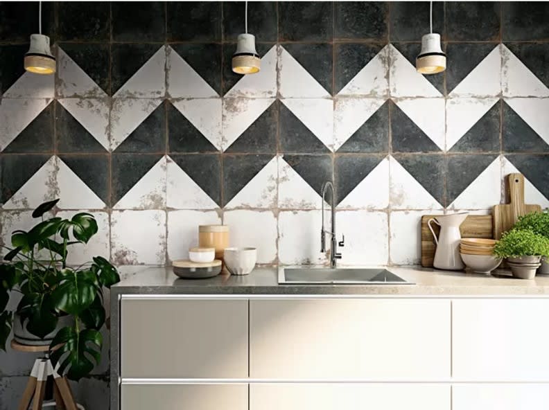Julie Sheer, Houzz Contributor; journalist with more than two decades of experience as a graphics editor says, Many exhibits featured tiles that combined contemporary designs with distressed, weathered finishes, a look that has been gaining in popularity. The design seen here, from Emser Tile’s Rhapsody collection, has a worn finish and modern floral and diagonal patterns that exemplify the trend. “Rustic modern tends to be a huge trend,” says Crista Tekstra, senior brand manager at Emser. “We continue to see modern but distressed looks and patterns.”